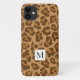 Leopard print in tones of brown iPhone 11 case, displaying an animal print pattern wirth monogram.