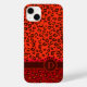 A unique leopard print style monogram case in rich reds and warm autumn hues. Personalise this item with your initial. This example reads: D. This original unique pattern is designed by Sarah Trett.