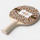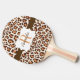 Cool animal brown, tan, and cream leopard print ping pong paddle with print on both sides, front has a brown stripe with a white edged with brown banner you can personalise with your monogram initial and name!