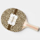 Cool animal brown, tan, and peach leopard print ping pong paddle with print on both sides, front has a brown stripe with a white edged with brown banner you can personalise with your monogram initial and name!