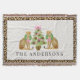 This throw blanket features two leopards surrounding a Christmas tree with leopard print ornaments. There is a leopard print border around the edge. You can personalize with a name.