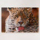 Leopard cleaning his paws on the ground jigsaw puzzle