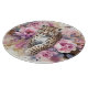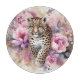 The image features a beautifully detailed illustration of a young leopard surrounded by an array of vibrant, blooming flowers. The leopard, with its distinctive spotted fur and expressive eyes, is positioned prominently in the centre, creating a striking focal point. The surrounding flowers, predominantly in shades of pink and purple, add a soft, whimsical touch to the composition. The background includes splashes of gold and pastel colours, enhancing the overall dreamy and artistic feel of the image. This captivating blend of wildlife and floral elements makes the image both visually appealing and unique, perfect for products that aim to evoke a sense of elegance and natural beauty.