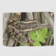 A photograph of a Leopard frog sitting on a pile of sticks.