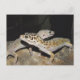 Pay attention to beautiful pattern on a leopard gecko. The leopard gecko (Eublepharis macularius) lizard in the United States is one of the most commonly kept lizards today. For the home it is the best lizard. That lizard can vocalise and wash an eye with its tongue. Leopard geckos are long-lived lizards. On average they live six to 10 years, but many males live 10 to 20 years. Leopard geckos are easy pets, they easy to breed.and feed. In addition they have different colour morphs. Leopard gecko as pet is the best lizard! And all gecko lovers could have this fun postcard!