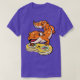 I give wanted to give this a 4 instead of a 5 because these Basic DARK T0shirts run unexpectedly SLIM or Narrow. Which is great if you do not have a potbelly, but I have a paunch. It isn't the shirt's fault that I've got a beer belly. The design and shirt itself is a quality cotton shirt. The color is more of a deep purple, but still a very pretty color. The Basic DARK T-shirts run a bit SLIMMER than the Basic Ts. The neck is a fraction narrower (or seems to be narrower) also. I'm a paunchy middle-aged woman and my neck is 12 inches (31cm) thick and the neckline fell about the same as in the photo of the man, and I had the desire to tug it a bit. So if you're a thick necked man or like loose shirts, be aware these are slimmer shirts. Once I get rid of my lockdown paunch it'll look great. The shirt washed well in cold water with no apparent bleeding. We don't have a dryer, so it hung dry. Did not shrink. Love the colors and the design. The design looks smaller on my shirt than it does on the model on-line. But still, it looks good on the shirt. The printing looks as it does on the model, just the size seems fractionally smaller. Washed garment in cold water, hung dry and design appeared unaffected.