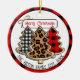 Personalised with name and established date Black and white Buffalo plaid, red and black gingham, leopard print Christmas Trees ornament.