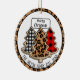Personalised with name and established date Black and white Buffalo plaid, red and black gingham, leopard print Christmas Trees ornament.