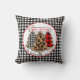 Personalised with name and established date Black and white Buffalo plaid, red and black gingham, leopard print Christmas Trees pillow.