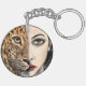 Keychains with Leopard Girl Face Fantasy Painting Art Wild Animal Cheetah Woman - Choose / Add Your Unique Text / Name / Colours / Photo / Image - Make Your Special Gift - Resize and move or remove and add elements / text with Customisation tool ! Painting and Design by MIGNED.