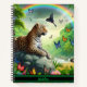 A stunning Notebook features a majestic leopard resting on a rock, surrounded by vivid butterflies and lush greenery under a mesmerising rainbow, creating a whimsical natural landscape.