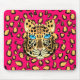 Whimsical Leopard with Leopard Print Background Mouse Pad! Customisable! Change the background colour to match your room!