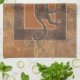 Leopard on Orange and Brown Background Tea Towel