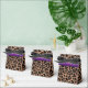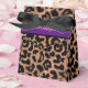 A stylish design with a leopard animal print border in tan, brown and black. Name is displayed in gold coloured script on a rich grape purple ribbon style background. Below, "sweet sixteen" is written in grey script. Background colour may be changed by clicking CUSTOMIZE IT, EDIT, then BACKGROUND. Text is fully customisable to suit another occasion. Choice of bow colour.