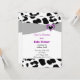A border of black and white leopard pattern accented by a black band and purple heart. Customise with all of your baby shower information as desired.