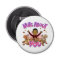 Very cute and compact little bottle opener. Also very fond of the magnet, both for sticking to the fridge and holding on to the bottle cap when trying to open it. Good quality print. As pictured.
