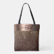 An elegant, glamourous and feminine with brown, golden and black leopard pattern, decorated with golden confetti. Personalise and add your name and monogram letter. A faux bronze coloured band. Black and brown letters. The name is written with a trendy hand lettered style script with swashes. To keep the swashes only delete the sample name, leave the spaces or emoji's in front and after the name.