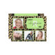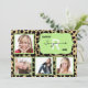 This design features a brown and black leopard print background accented by a mint green and white fancy frame with customisable text. Upload 4 of your own photos to complete the look! The reverse side of this popular design has the same leopard pattern along with plenty of customisable text for you to add your party information. Use as a graduation announcement, party invitation or both!