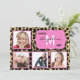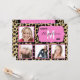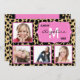 This design features a brown and black leopard print background accented by a pink and white fancy frame with customisable text. Upload 4 of your own photos to complete the look! The reverse side of this popular design has the same leopard pattern along with plenty of customisable text for you to add your party information. Use as a graduation announcement, party invitation or both!