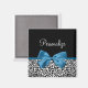 Leopard Print Animal Pattern Pretty Blue Bow Magnet