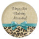 Leopard Print Aqua Blue Bow Girls Womens Birthday Plate