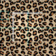 Fabric in a digital textile print in a textured leopard pattern - leopard spots in black, accented with rust, on a caramel tan background