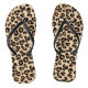 Flip-flops in a digital textile print in a textured leopard pattern - leopard spots in black, accented with rust, on a tan / beige background