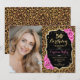 Leopard Print Black Gold Pink Photo 50th Birthday Invitation