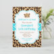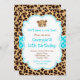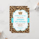 Leopard Print Blue Quatrefoil Birthday Party Invitation