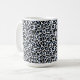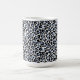 This ceramic coffee mug is shown with an animal blue leopard print.