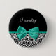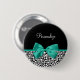 Personalise by adding the name of any girly girl to this trendy black and white leopard print button with a girly emerald green ribbon tied into a cute bow. This stylish animal print name tag is a flat printed image, and does not contain actual ribbon.