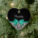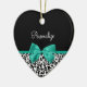 Personalise by adding the name of any girly girl to this trendy black and white leopard print heart-shaped ornament with a girly emerald green ribbon tied into a cute bow. This stylish animal print design is a flat printed image, and does not contain actual ribbon.