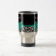 Personalise by adding the name of any girly girl to this trendy black and white leopard print travel mug with a girly emerald green ribbon tied into a cute bow. This stylish animal print design is a flat printed image, and does not contain actual ribbon.
