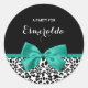 Leopard Print Emerald Green Ribbon Bow Party Name Classic Round Sticker