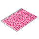 An updated take on a classic leopard print - leopard spots in deep fuchsia pink on a pastel pink background
