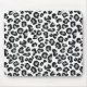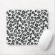 Mouse pad in a digital textile print in a textured leopard pattern - leopard spots in black, accented with silver gray / grey, on a white background