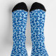 Socks in a digital textile print in a textured leopard pattern - leopard spots in dark denim blue, accented with medium blue, on a light chambray blue background