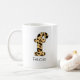 Personalise this custom leopard print lowercase letter "f" coffee mug by adding a name. The custom name is in a girly handwritten type font.