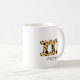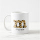 Personalise this custom leopard print lowercase letter "m" coffee mug by adding a name. The custom name is in a girly handwritten type font.