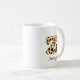 Personalise this custom leopard print lowercase letter "z" coffee mug by adding a name. The black text for the custom name is in a girly handwritten type font.