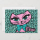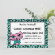 Get a little wild with these fun invitations featuring a blue leopard print border and cute pink kitty in a blue bow. She says MEOW. Customisable text. Coordinated note cards, stamps and stationery also available. PinkInkArt original!