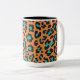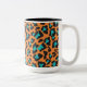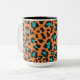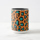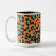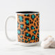 Leopard Print Orange, Black, Aqua Two-Tone Coffee Mug
