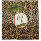 A Leopard and palm tree on a leopard pattern background.