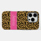 A stylish leopard pattern iPhone case with a pink stripe. Preppy and cute -- Easily personalise with your name!