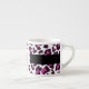 Chic, modern, pretty wild animal big cats leopard print espresso mug in purple, black, and white that you can easily customise with your name and monogram initial!