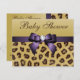 Leopard Print, Purple Bow Baby Shower Invitation