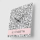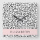 Leopard Print, Spots, Black And White, Your Name Square Wall Clock