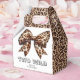 Introducing cute favour boxes for a delightful girl's 2nd birthday celebration that radiates wild fun! This stunning design features a charming leopard print coquette bow and a leopard print background.