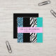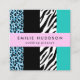 Leopard Print, Zebra Print, Animal Print, Blue Square Business Card