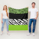 Leopard Print, Zebra Print, Animal Print, Green Fleece Blanket
